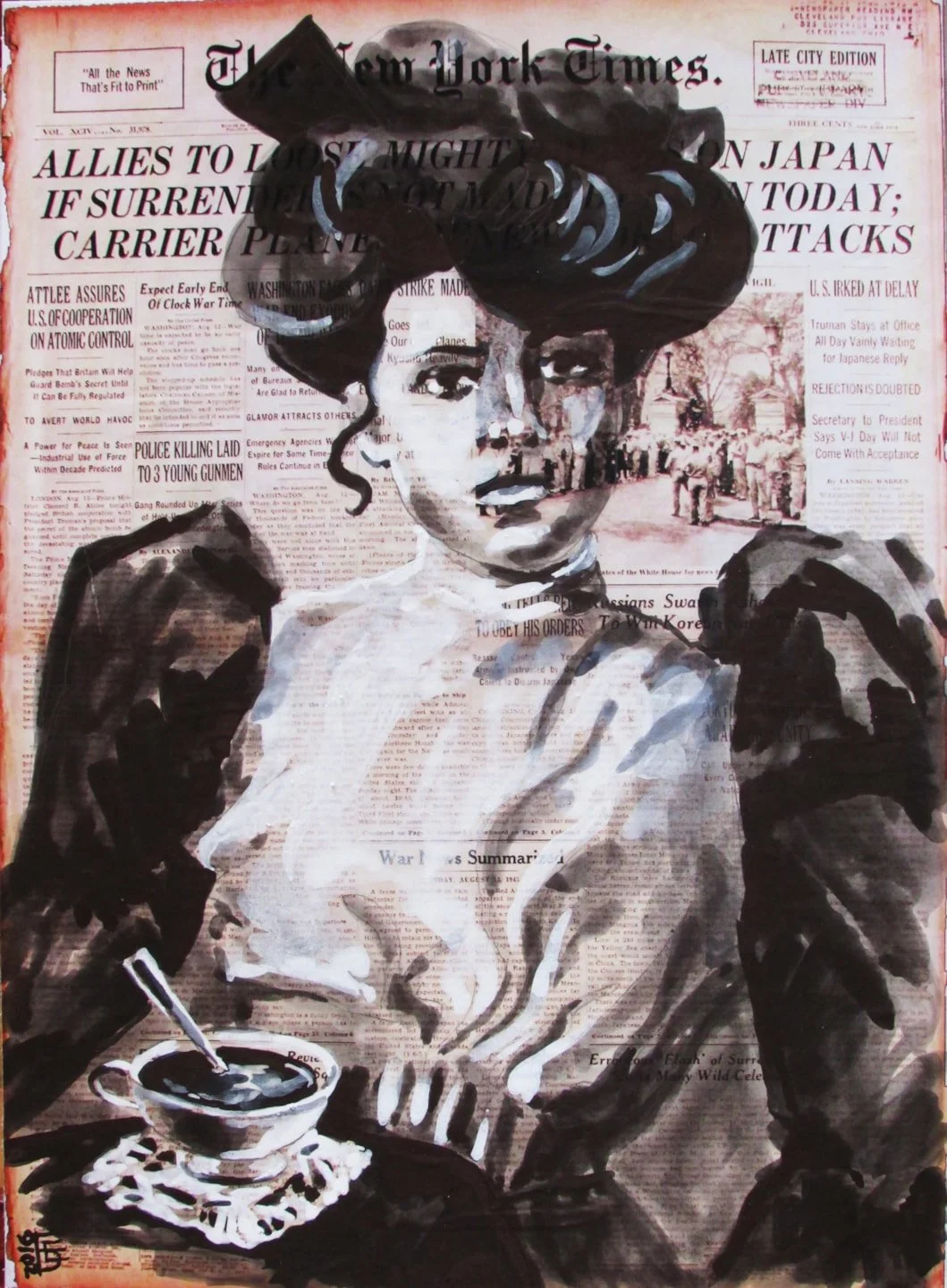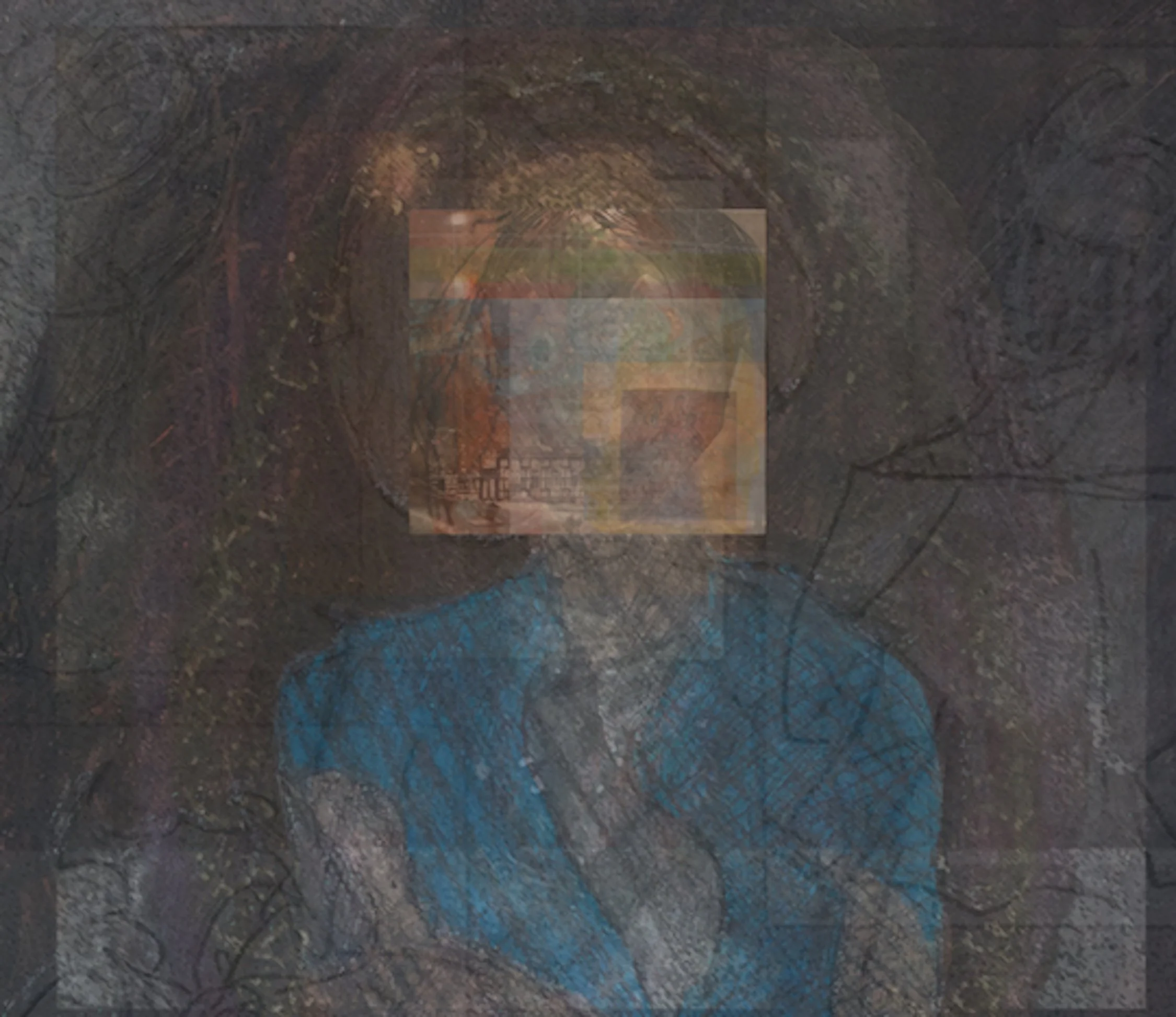 The image is an assemblage of different persons, places and things in my work overall, all having to do with a grand narrative I am calling The Eisenhower Setup. This grand narrative is an ongoing series containing hundreds of mixed media and performance pieces coming together with a novel-length story—a building mystery involving global intrigue, disappearance, secrets of mass human sacrifice, and the personal toll of conscience.